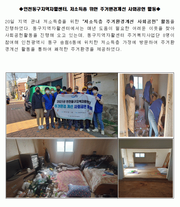 인천동구지역자활센터, 저소득층 위한 주거환경개선 사회공헌 활동