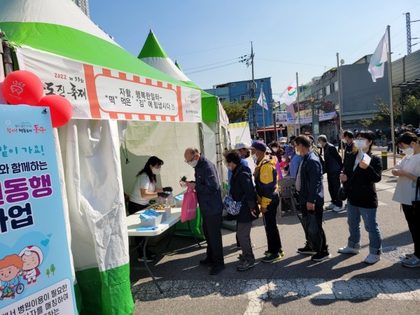 동구지역자활센터에서 준비한 1500개 김떡말이 홍보품은 이날 큰 호응을 얻으며 자활사업을 홍보하였다.